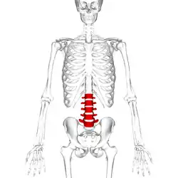 ![]() Position of human lumbar vertebrae (shown in red). It consists of 5 bones, from top to down, L1, L2, L3, L4 and L5. | |