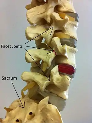 - رباطهای طولی قدامی، خلفی و بین خاری، سختشامه Dura mater، جسم مهره، مفاصل فاست (آپوفیزیال)، عضلات وطناب نخاعی یا ریشههای اعصاب نخاعی