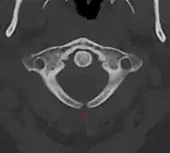 کمان مهره اطلس و زائده دندانی مهره آسه در تصویر سی تی.