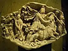 - Commodian, Instructiones 1.13: "The unconquered one was born from a rock, if he is regarded as a god." See also the image of "Mithras petra genetrix Terme", inset above.
