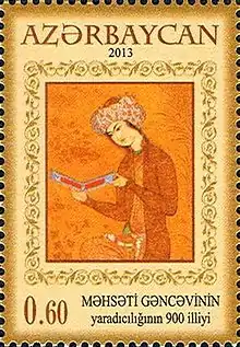 ![]() تمبری که به مناسبت نُهصدمین سالگرد زادرود مهستی گنجهای در جمهوری آذربایجان چاپ شدهاست. | |