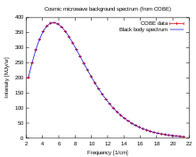 در سال ۱۹۸۹ ناسا ماهواره کاوشگر زمینه کیهان(COBE) را به فضا فرستاد. یافتههای این ماهواره با پیشبینیها در مورد تابش زمینه کیهانی همخوانی داشت. این ماهواره دمای پس زمینه این تابش را ۲٫۷۲۶ کلوین اندازهگیری نمود (که البته در اندازهگیریهای جدیدتر این مقدار به ۲٫۷۲۵ تغییر یافتهاست) و همچنین برای نخستین بار شواهدی مبنی بر وجود نوسانات (ناهمسانگردی) در تابش زمینه کیهانی در مرتبه یک قسمت در ۱۰۵ ارائه داد.[62] جان ماتر و جرج اسموت به عنوان پیشروان این پژوهش، موفق به کسب جایزه نوبل شدند. در خلال سالهای اخیر آزمایشهای زمینی و بالنی متعددی، ناهمسانگردیهای تابش زمینه کیهانی را مورد پژوهش قرار دادهاند. در سال ۲۰۰۰–۲۰۰۱ از آزمایشهای متعددی که از مهمترینشان میتوان به آزمایش بومرنگ اشاره نمود، و با اندازهگیری اندازه زاویهای ناهمسانگردیها، این نتیجه حاصل شد که شکل فضایی جهان تخت است.[74][75][76]