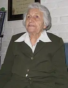 ![]() مهلقا ملاح در دفتر «جمعیت زنان مبارزه با آلودگی محیط زیست» ۱۴ بهمن ۱۳۸۶. | |
