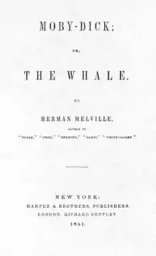 ![]() صفحهٔ عنوان، نخستین ویرایش آمریکایی موبیدیک | |
