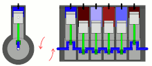 تصویر متحرک از یک موتور شش سیلندر خطی