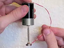 همانطور که در تصویر میبینید یک آهنربا به پیچ وصل شده و به آن خاصیت آهنربایی داده است و پیچ از یک طرف به قطب باتری وصل شده است. سپس یک سیم به قطب دیگر وصل شده است. چون سیم به پیچ و پیچ به باتری وصل است از آن جریان میگذرد و از طرفی یک میدان مغناطیسی در پیچ نیز که توسط آهنربا ایجاد شده وجود دارد از طرفی میدانیم به بار الکتریکی که در میدان مغناطیسی قرار دارد نیرو وارد میشود که نیروی لورنتس نام دارد پس چون پیچ حامل جریان الکتریکی است و در میدان مغناطیسی است به آن نیرو وارد میشود و شروع به چرخش میکند.