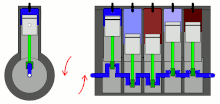 تصویر متحرک از یک موتور پنج سیلندر خطی