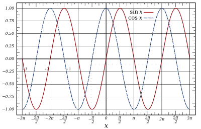 نمودار توابع سینوسی و کسینوسی.