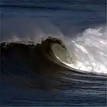 - شکست شیرجهای (فروریز)[پ 2]: عدم تقارن موج، شیرجه بخشی از ذرات آب در پای موج جلویی خود، آشفتگی در محل شیرجه، آشفتگی بیشتر در مقایسه با شکست ریزشی