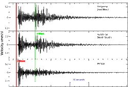 - مشارکتکنندگان ویکیپدیا. «Seismic wave». در دانشنامهٔ ویکیپدیای انگلیسی، بازبینیشده در ۴ دسامبر ۲۰۱۷.