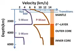 سرعت انتشار امواج لرزهای به چگالی و کشسانی محیط انتشار بستگی دارد. سرعت این امواج با افزایش ژرفای زمین افزایش مییابد و از ۲ تا ۸ کیلومتر در ثانیه در پوسته تا ۱۳ کیلومتر در ثانیه در گوشته افزایش مییابد.