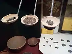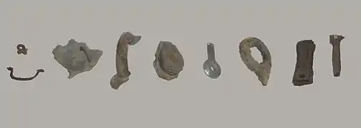 Սափոր ծիսական, կավե, ցլի գլխի երեք արձանիկներով.