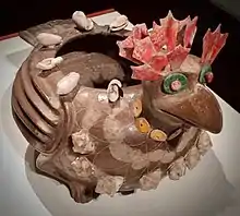 "جا گلدانی" برای نمایش تئوتیئواکان، ۲۰۱۷–۲۰۱۸. تمثال پرنده، ۲۵۰–۳۵۰ میلادی