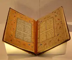 جبرئیل فرشته در نزد پیامبر اسلام. از مجمل التواریخ و القصص. موزه متروپولیتن نیویورک.