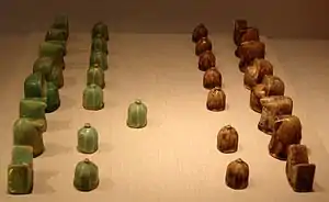 تخته شطرنج نیشابوری و مهرههای آن. قرن دوازدهم میلادی. موزه متروپولیتن.