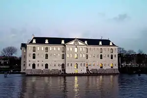 نمای ساختمان موزه دریانوردی هلند که در سده هفدهم ساخته شدهاست