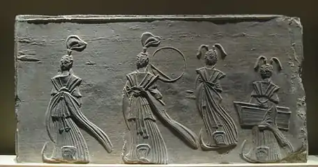 Brick relief depicting two scholars and two maids, from the Southern Dynasties
