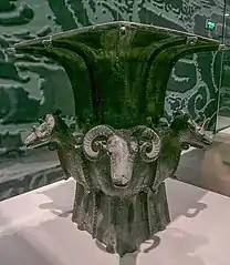 Square zun with four sheep from late period of the Shang Dynasty