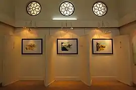 در بخش نگارگری آثار نگارگری ایرانی در سبک و شیوههای مختلف به نمایش درآمدهاند که از آن جمله میتوان مینیاتورهای هرات، اصفهان، تبریز و تک چهرههای قاجاری را بر شمرد. تابلو ارزشمند و نفیس «چوگان» اثر استاد حاج میرزا آقا امامی اصفهانی که به شیوهٔ سوخت و معرق و مینیاتور روی چرم خلق شده از آثار جالب این بخش است.