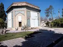 کریم خان در سال ۱۱۹۳ ه.ق درگذشت و بنا به وصیت خودش پیکر او را در شاهنشین شرقی این عمارت به خاک سپردند. ۱۳ سال بعد ،آغا محمد خان قاجار به سبب کینهتوزی نسبت به خاندان زند استخوانهای کریم خان را از محل دفن خارج کرد و به کاخ گلستان منتقل کرد و در زیر راه پله بقایای جسد را به منظور بی حرمتی به جسد دفن نمود، پس از به قدرت رسیدن رضاشاه پهلوی، وی که قصد در اعادهٔ حیثیت از خاندان زند را داشت، دستور داد تا این استخوانها از زیر پله ایوان خارج و به شیراز برده و با احترام دفن شود.