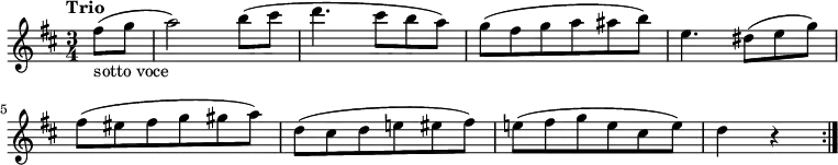 4) و در گام اصلی (سل ماژور) قرار دارد. همانطور که در این فرم معمول است، «تریو» دارای یک بخش متضاد با منوئه و در ر ماژور است. در انتها با تکرار بخش منوئه، قطعه به پایان میرسد.