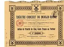 بلیط ویژه تئاتر-کنسرت مولن روژ، صادر شده در ۱۵ فوریه ۱۹۰۴