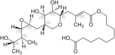 یک آنتیبیوتیک طبیعی بوده که در اثر واکنشهای تخمیری در سوش پسودوموناس فلوروسنس تولید میشود. موپیروسین با اتصال به آنزیم ایزولوسیل ترنسفر ـ RNA سنتتاز اثر مینماید که اثری منحصر بفرد میباشد از این رو به ندرت در برابر موپیروسین مقاومت دیده میشود. موپیروسین علیه سوشهای استافیلوکوک اورئوس و استرپتوکوک پیوژن مؤثر بودهاست.