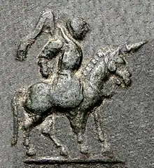 ![]() موگه زرهبهتن و سوار بر اسب. | |