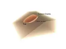همانگونه که در شکل نشان داده شدهاست، یک ناحیه شکست کروی در زیر شیروانی خاکی تشکیل میشود. احتمال رخ دادن چنین پدیدهای میتواند با استفاده از یک تحلیل کروی دوبعدی ساده محاسبه شود. یک سختی اولیه در این تحلیل یافتن محتملترین صفحات لغزش برای هر نوع موقعیت داده شدهاست.