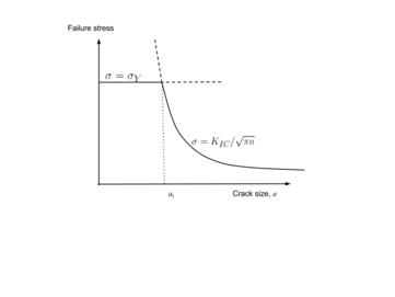 اجازه دهید ماده دارای مقاومت تسلیم و مقاومت در برابر شکستگی در حالت I باشد. بر اساس مکانیک شکست، مواد در اثر تنش شکست می خورند. بر اساس قابلیت انعطاف پذیری ، ماده هنگامی حاصل می شود که . این منحنی ها وقتی تلاقی می کنند. این مقدار به عنوان اندازه نقص انتقال نامیده می شود و به خصوصیات ماده سازه بستگی دارد. وقتی ، خرابی توسط بازده پلاستیک اداره می شود ، و وقتی خرابی توسط مکانیک شکست کنترل می شود. مقدار برای آلیاژهای مهندسی 100 میلی متر و برای سرامیک ها 0.001 میلی متر است. اگر فرض کنیم که فرایندهای تولید منجر به ایجاد نقص در ترتیب میکرومتر شوند، می توان دریافت که سرامیک ها به دلیل شکستگی ناکارآمد می شوند، در حالی که آلیاژهای مهندسی با تغییر شکل پلاستیک از کار می افتند.