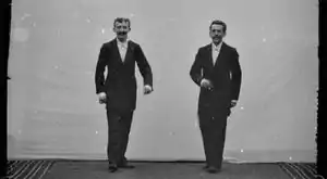 مکس و امیل اسکلادانوسکی در مقابل پرده نمایش فیلم