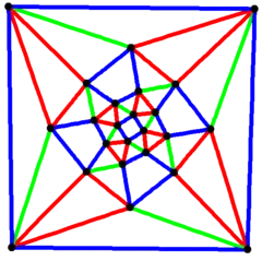 این یک چند وجهی دستیار است. یعنی دو شکل مشخص دارد که تصویری آینهای از یکدیگر هستند. اتحاد هر دو شکل یک مرکب از دو مکعب ماسوره است، و بدنه محدب هر دو مجموعه رأس یک مکعب کوچک است.