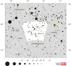 | نام درخشانترین ستاره | آلفا مگس جنوبی |