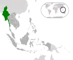 ![]() موقعیت میانمار (سبز) در انجمن ملل آسیای جنوب شرقی (خاکستری تیره) — [Legend] | |