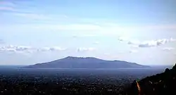 منظرهای از جزیرهٔ میاکه جیما. این عکس از جزیرهٔ کوزوشیما برداشته شدهاست.