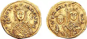 امپراتور بیزانس و فرمانروایی مشترک با مادرش تئودورا و نایب السلطنه تئودورا