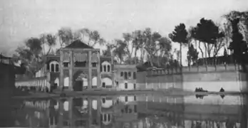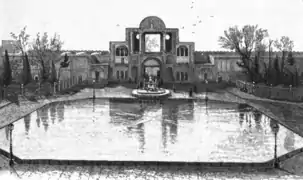 ![]() نمایی از میدان ارگ سلطنتی تهران از هنرمند فرانسوی اوژن فلاندن در سال ۱۸۴۰ | |