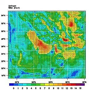 میدان باد (Wind Field) عبارتست از دستهای از بردارها که نمایانگر تندی و جهت باد بر روی یک محدوده شبیهسازی شده در یک زمان مشخص باشد. هنگامی که در مورد باد سخن گفته میشود، منظور تندی و جهت باد در یک نقطه جغرافیایی مشخص است ولی هنگامی که در مورد میدان باد سخن گفته میشود، منظور تندی و جهت باد در یک محدوده جغرافیایی است، مانند میدان باد بر روی خلیج فارس.