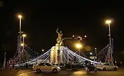 در میانه این میدان تندیس نبرد گرشاسب با اژدها (اثر غلامرضا رحیمزاده ارژنگ در سال ۱۳۱۵) [2]قرار دارد که نبرد پیروزمندانه گرشاسپ، از پهلوانان شاهنامه را با اژدها نشان میدهد. گرشاسپ در حالی که نیزهای به دست دارد، در حال نبرد با اژدهایی است که به دور بدن او پیچیده و دهان خود را باز کردهاست.[3]