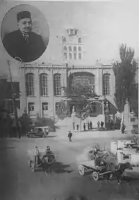 میدان ساعت تبریز به سال ۱۳۲۹ خورشیدی و تصویر ارفعالملک جلیلی، شهردار وقت (۱۳۱۸–۱۳۱۴)، که بانی این عمارت بود