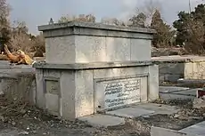 مزار او در ابن بابویه و در گوشهای متروک (در نزدیکی مزار نصرت الدوله فیروز) قرار دارد.[12][13]