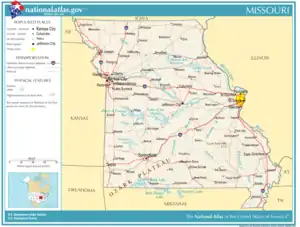 ![]() نقشه ایالتهای آمریکا همراه برجستهبودن میزوری | |||||