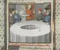 ![]() یک نقاشی که نشانگر شاه آرتور و شوالیههایش میباشد که بر روی میز گرد جمع شدهاند. | |