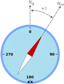 محور مغناطیسی زمین با محور جغرافیایی آن (محور چرخش زمین) به طور کامل موازی نیست. در نتیجه خواندهٔ یک قطب نما تا حدودی از شمال جغرافیایی انحراف دارد. این انحراف که با مکان تغییر میکند وردش مغناطیسی یا میل مغناطیسی نامیده میشود.[1]