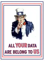 یک نمونه از اندیشهٔ فرهنگی همهگیر اینترنتی که در اعتراض به تجسس و موشکافی لپتاپ مسافران در آمریکا انجام شد. این جمله بازی با جمله ی"All your base are belong to us"است.