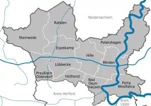 شهرکها and municipalities in Kreis Minden-Lübbecke