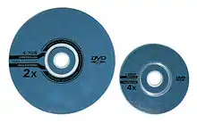 دیسک ۱۲ سانتیمتر مرسوم در سمت چپ و دیسک ۸ سانتیمتر در سمت راست