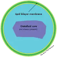 میکروبادیها انواع گوناگونی از اجسام موجود در مایع درونسلولی هستند. میکروبادی معمولاً یک وزیکول با شکل کروی با قطری که از ۰٫۲ تا ۱٫۵ میکرومتر متغیر است.[2] میکروبادیها در سیتوپلاسم یاخته پیدا میشوند، اما تنها با میکروسکوپ الکترونی میتوان آنها را دید. آنها توسط یک غشای دو لایهای فسفولیپیدی احاطه شدهاند و حاوی ماتریسی از ماده درونیاختهای از جمله آنزیمها و پروتئینهای دیگر هستند، اما به نظر نمیرسد که دارای ماده ژنتیکی باشند تا بتوانند خود را تکثیر کنند.[2]