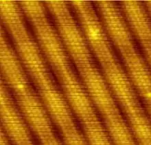 حاشيههای بازسازی شده طلا که از شش ردیف اتمی تشکیل شدهاند. تصویر 10*10 نانومتر