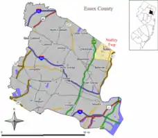 ![]() Map of Nutley Township in Essex County. Inset: Location of Essex County highlighted in the State of New Jersey. | |